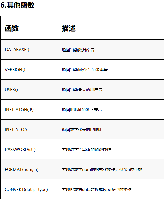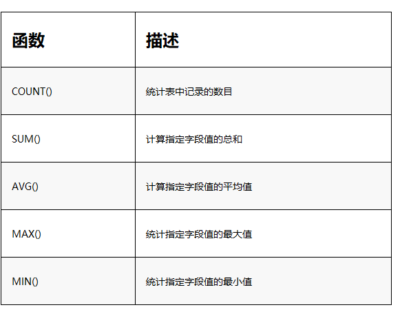 -- max(),min(),count()针对所有类型 sum(),avg() 只针对数值型类型有效 无效的时候不会报错就是会返回0