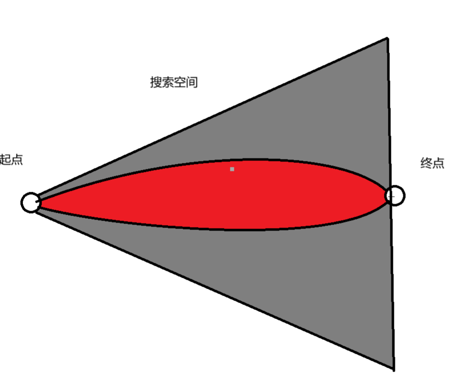 的搜索空间,如下图所示,我们正常的搜索空间是灰色面积,但是我们的A*