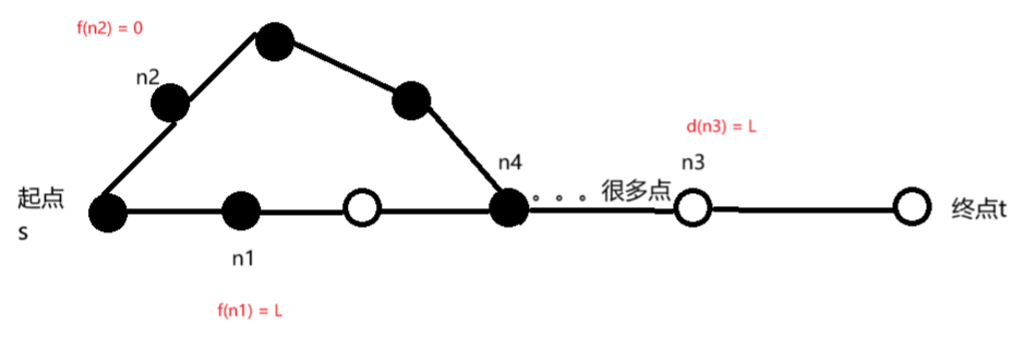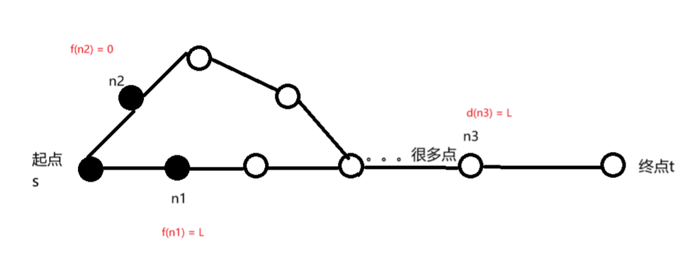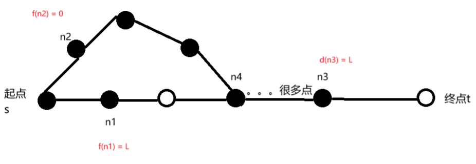 的时候,我们队列维护的值到了$$d(n3) + f(n3) = L$$这个时候我们会发现队列中最小的点是n1