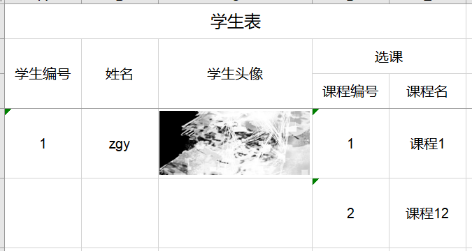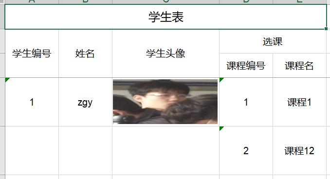 @RequestMapping("/export") public int importExcel(HttpServletRequest request) throws Exception { ExportParams params = new ExportParams("学生表","sheet1"); User user = new User(1,"zgy",readUrlAsBytes("https://cdn.acwing.com/media/user/profile/photo/80738_lg_e91297d1fd.jpg"), Arrays.asList(new Course(1,"课程1"),new Course(2,"课程12"))); List<User> users = new ArrayList<>(); users.add(user);