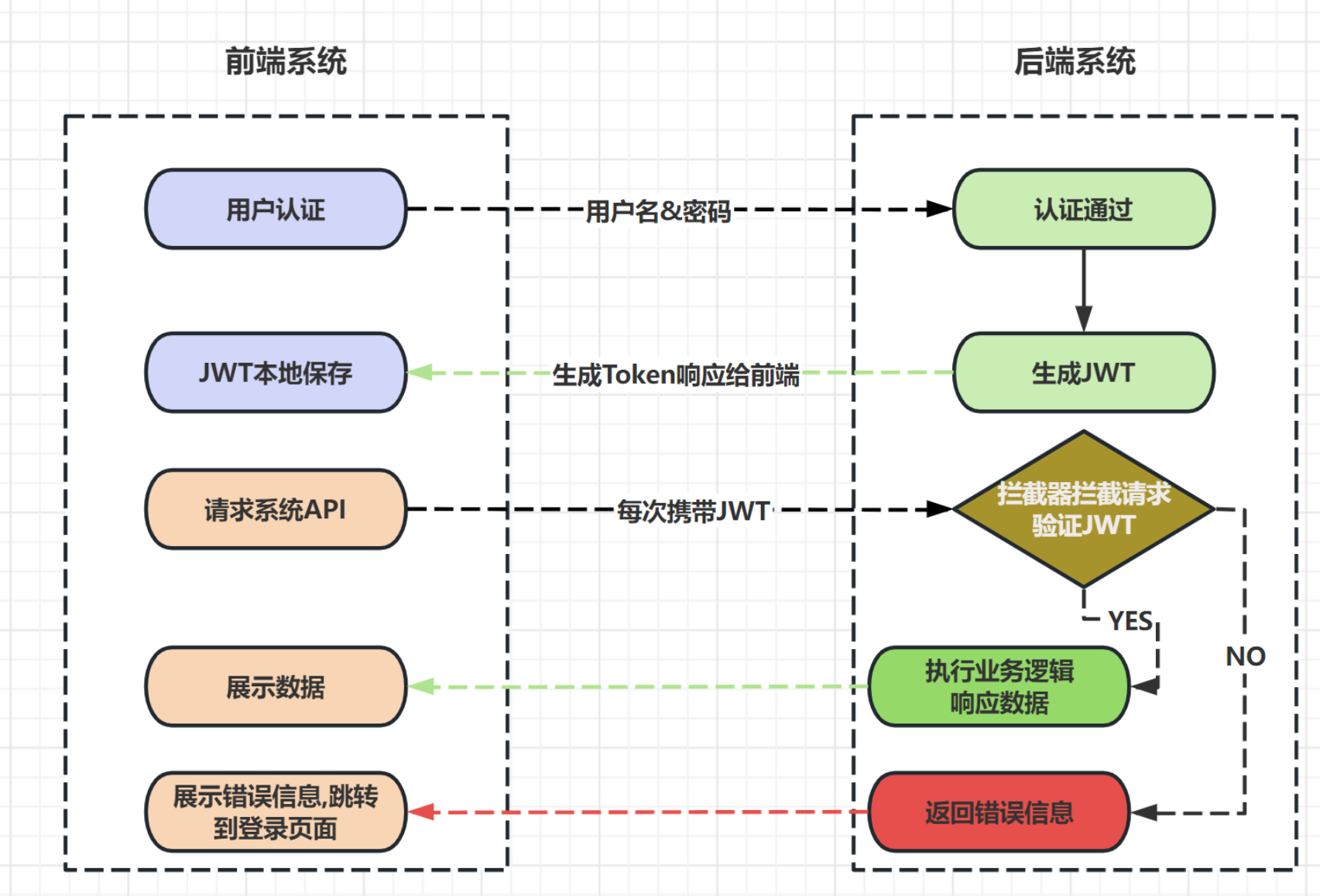 - 验证通过后后端使用JWT中包含的用户信息进行其他逻辑操作,返回相应结果。