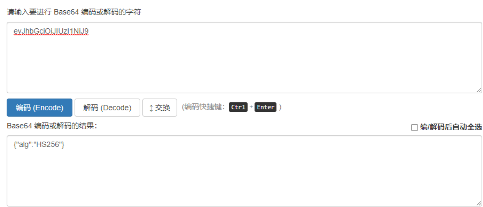 进行BASE64编码https://base64.us/,编码后的字符串如下:eyJhbGciOiJIUzI1NiJ9